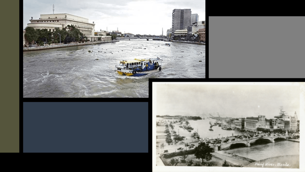 The Pasig River flows through Manila, dividing into north and south sections.