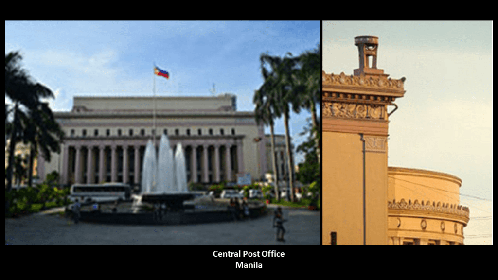 This old post card shows the Jones Bridge and the Manila Central Post Office building on the Pasig River.