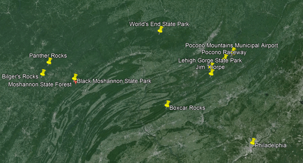 The 300-million-year-plus dating of the age of the fossilized forest brings to mind the dating of the “rock formations” that look like rock cities that we saw in Pennsylvania at the beginning of this post, like Panther Rocks and Bilger’s Rocks,which were dated back to the Pennsylvania Age of the Carboniferous period of the Paleozoic era more than 300-million-years ago, and said to have been formed by sediments deposited in streams and rivers.