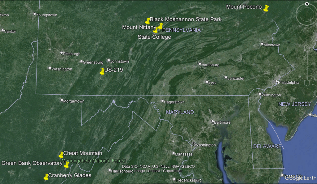 I noticed the same kind of “star-burst” pattern found by Gary Schoenung on the top left appearing around Knoxville, Tennessee, on the bottom right when I was looking at it earlier.