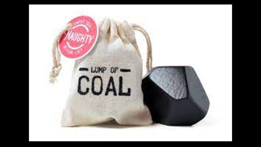 I will speculate that receiving a lump of coal at Christmas for being naughty may be misrepresenting the importance of coal and what it stands for.