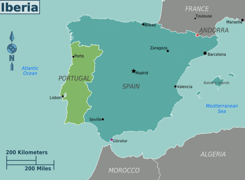 I knew about Spain and Portugal being called Iberia, and occupying what is called the Iberian Peninsula.