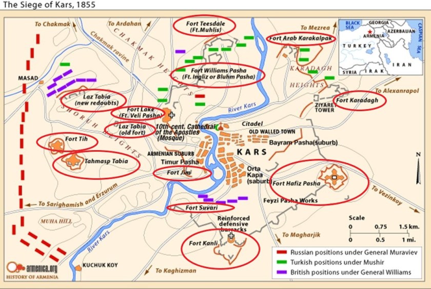 Then I found what appears to have been at least thirteen star forts in the city of Kars at one time, the largest city on Turkey’s closed border with Armenia that we saw earlier in this post.