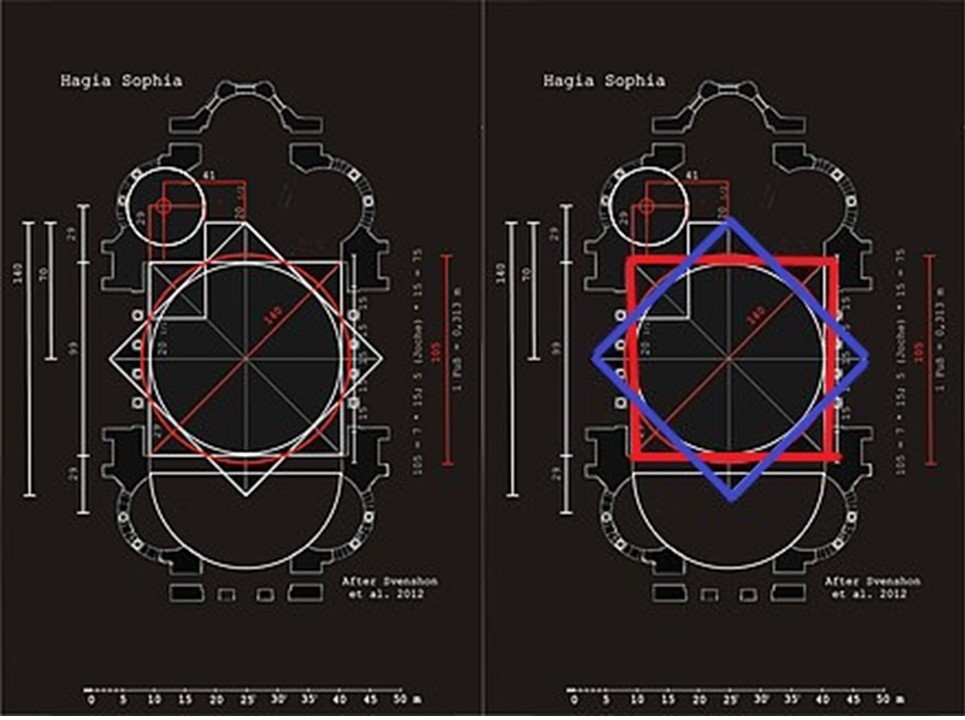 I found this diagram showing the geometric lay-out of the Hagia Sophia…which contains an eight-pointed star, as seen earlier in this post.