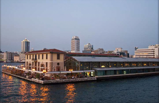 Izmir’s Metropolitan area extends along the outlying waters of the Gulf of Izmir, where we see what appears to be a shaped, masonry shoreline…