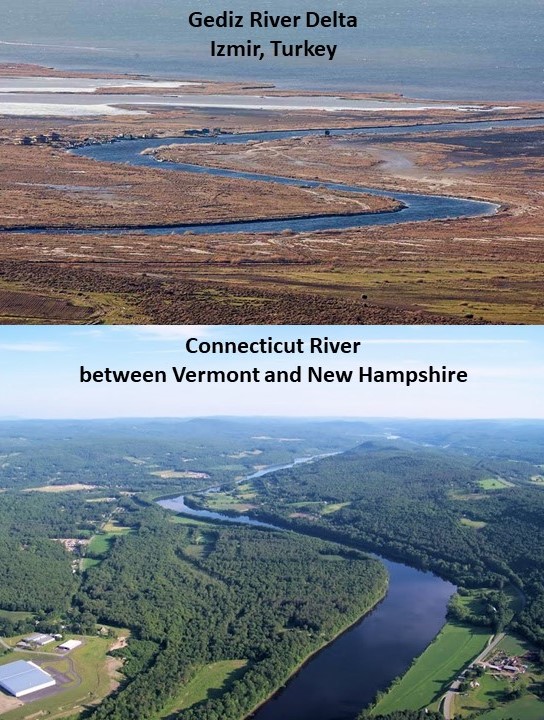 …and inland to the north across the Gediz River Delta, which has a shape similar to the Connecticut River along the Vermont – New Hampshire border in the United States.