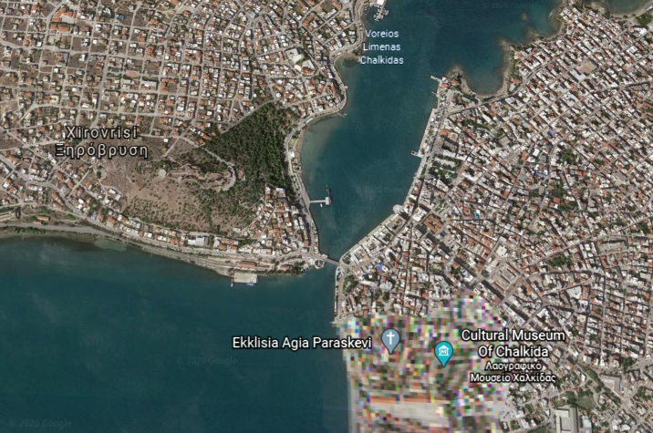 Euboea’s main city of Chalcis is situated around the narrowest point of the Euripus Strait.