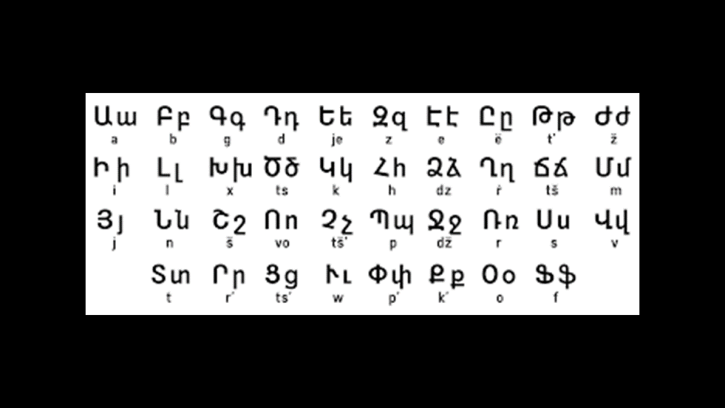 …and in 405 AD, the introduction of the Armenian alphabet still in use today was credited to Mesrop Mashtots and Isaac of Armenia.