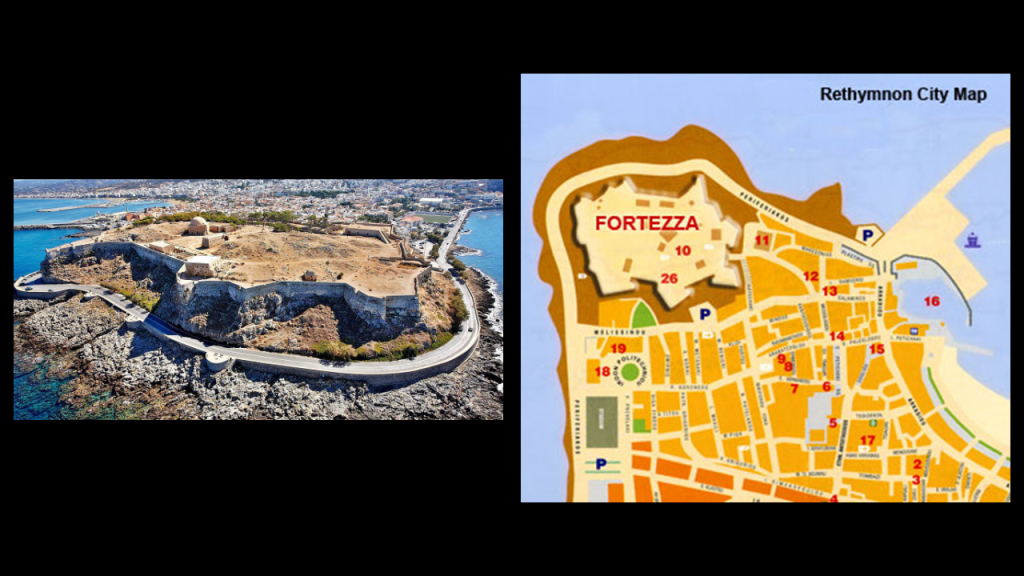 Crete is the largest and most populous of the Aegean Islands, and yet another small island packed with star forts, notated by the blue dots on this map, said to have been forts built to defend the island from enemies and pirates, by Venetians, as well as other historical influences on Crete like from the Genoese, Byzantines and Turks.