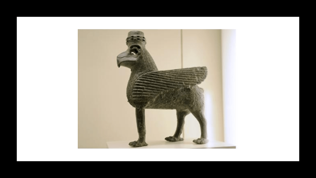 This is described as a bronze sphinx dated to the 7th-century BC, and said to be from either Tushpa…