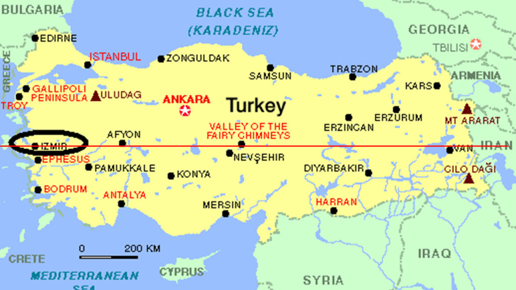 The next place I am going to look at is the city of Izmir, a city on the western edge of the Anatolian Plateau before heading west on this alignment.