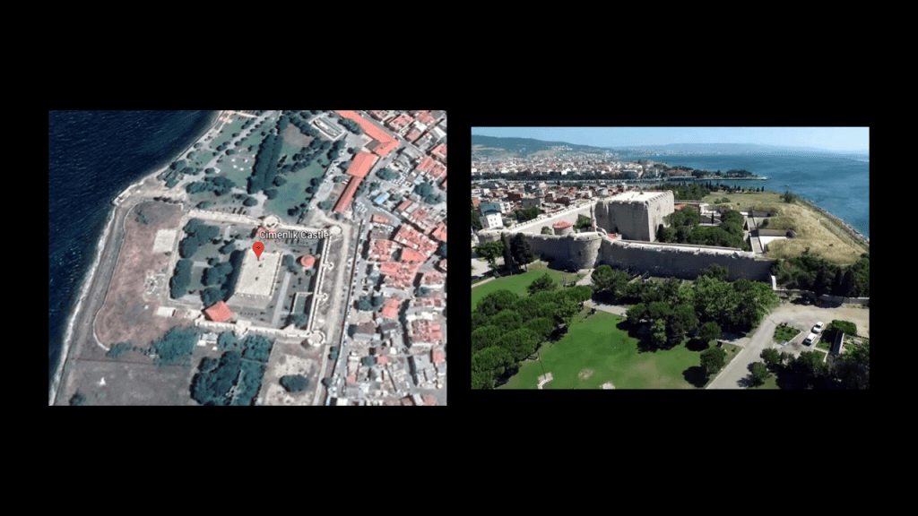 Further up, we find the Fort of Kilitbahir and Cimenlik Castle situated across from each other on the Strait of Dardenelles.
