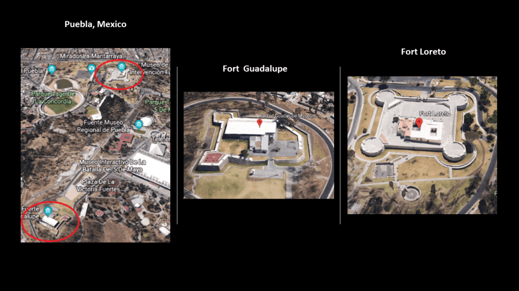 …and many other places around the world, like the two star forts in Puebla, Mexico, the Fort of Guadalupe and Fort Loreto that are situated relatively close to each other, on a hill not far from the city center of Puebla.