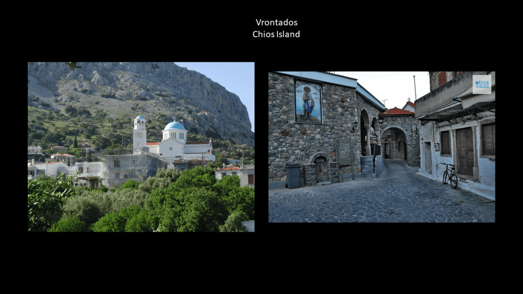 …and as being the traditional seat of the Mastic Villages, where the residents engage in mastic agriculture, farming the resin of the mastic tree, used as a chewing gum, treatment for things like digestive problems, and for making a liqueur and oil.