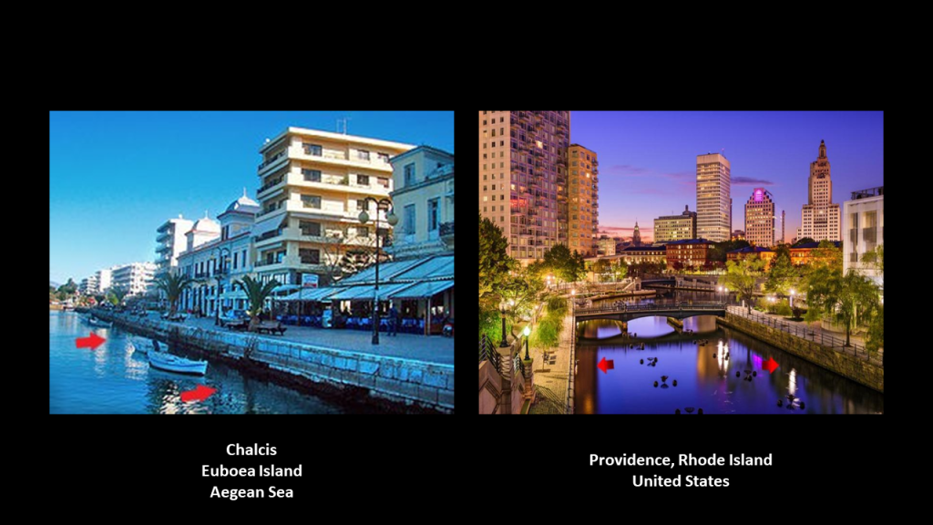 And this is the waterfront of Chalcis, with its masonry banks on the left, compared with the masonry banks of the Providence River in Providence, Rhode Island, on the right.