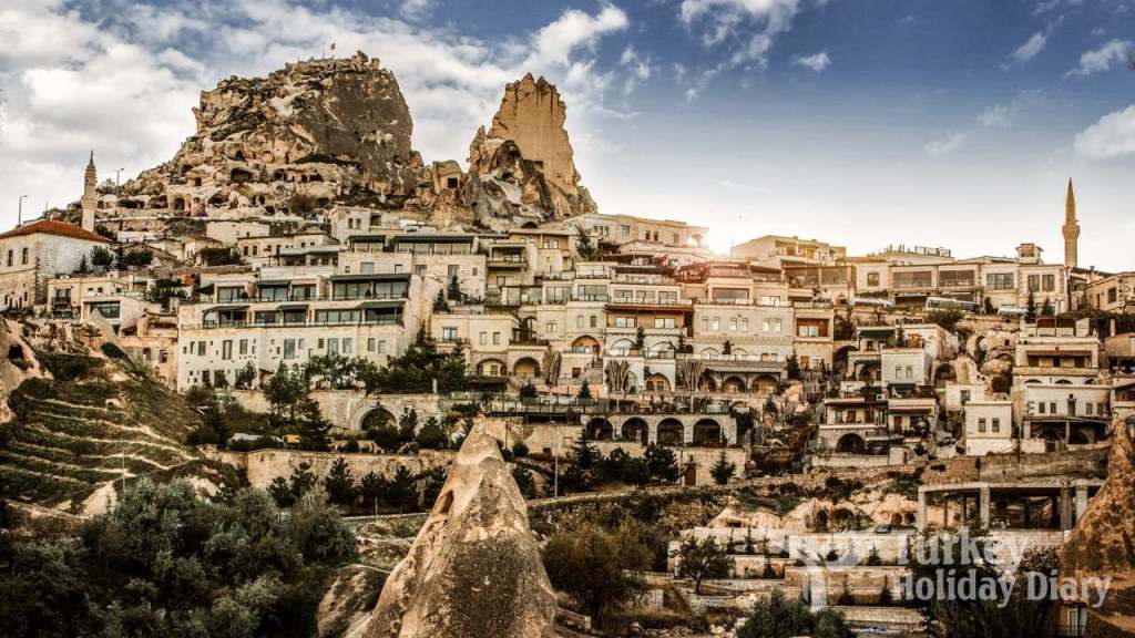 Uchisar, located on the edge of Goreme National Park, with its 197-foot, or 60-meter, high castle-mountain, criss-crossed by passageways and was said to have 1,000 people living inside it at one time, but apparently not anymore.