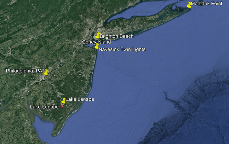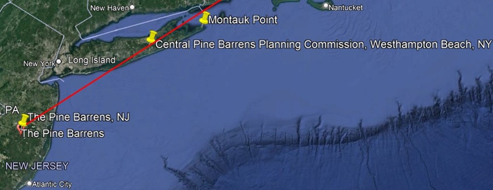 As I mentioned previously, all three of the Pine Barren ecosystems of Coastal Massachusetts, Central Long Island, and New Jersey are on this alignment, as seen on the top left.