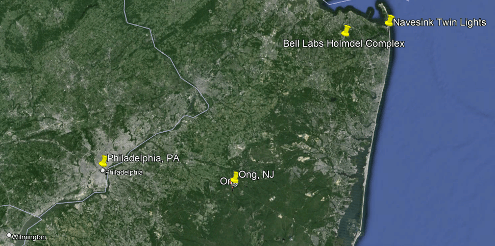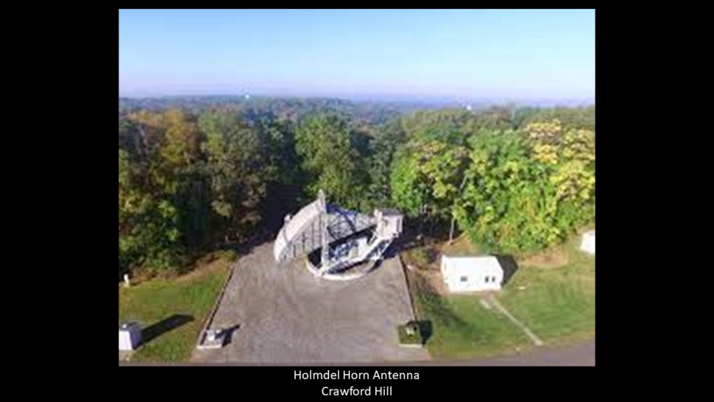 The Holmdel Horn Antenna was at Bell Labs facility on Crawford Hill, the highest point in New Jersey’s Coastal Plain, and used as a radio telescope and satellite communication antenna in the 1960s.