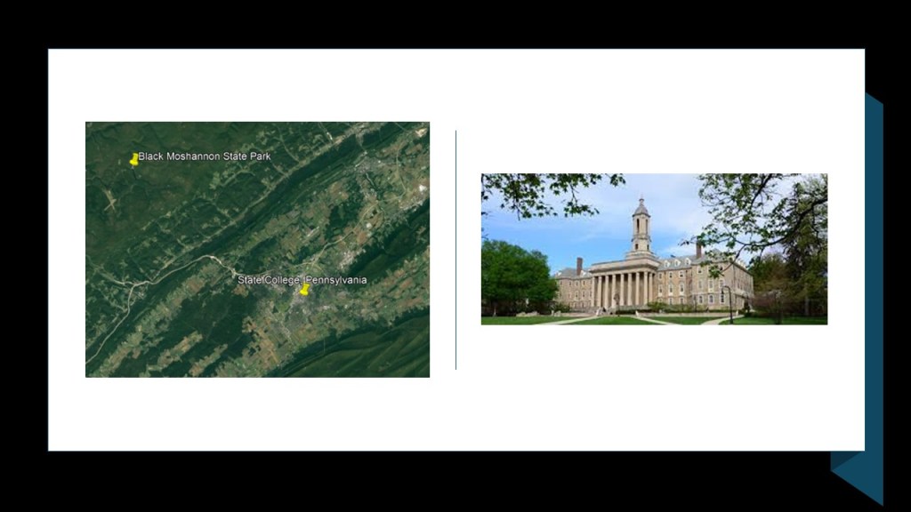 Similarly, Black Moshannon State park is 22-miles, or 35-kilometers, from State College, Pennsylvania, which is only a difference of 2-miles, or 4-kilometers, of the distance between the bogs at Cranberry Glades and the community of White Sulphur Springs.