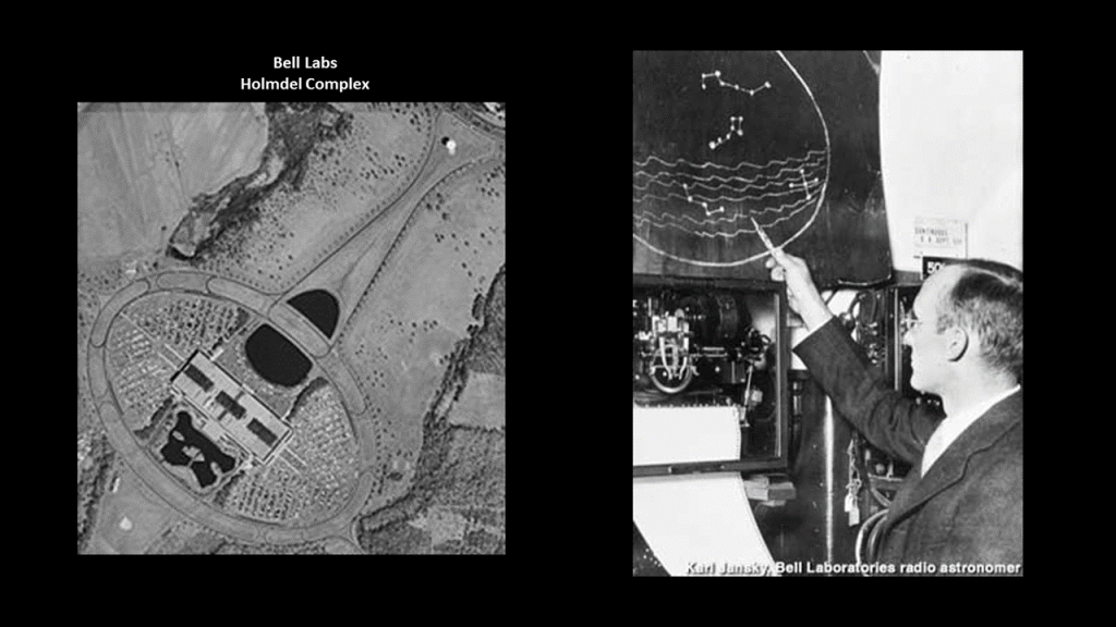 Researchers like Karl Jansky, credited with the discovery of radio waves coming from the Galactic Center, at the Bell Labs complex in Holmdel, New Jersey, were credited with the development of radio astronomy, among other things.