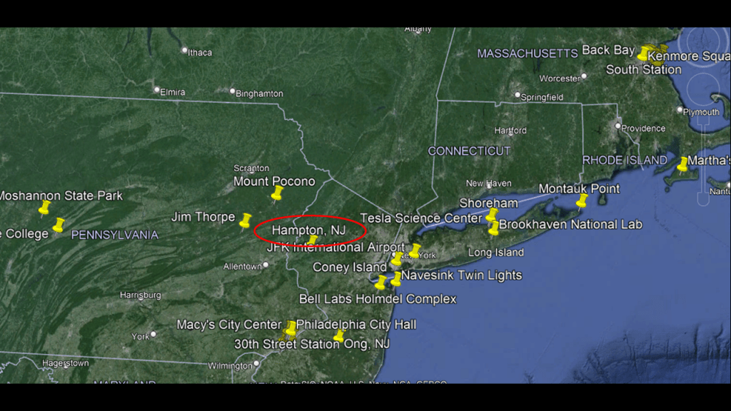 If Crowley’s ritual ceremony at Men-an-Tol, whenever it took place, did in fact send a line of rough energy to cross the ocean towards Long Island, as claimed by his son Amado to Peter Moon as mentioned previously, it would have crossed through or near the Pilgrim Monument, with the energy thereby striking it, either directly or indirectly.