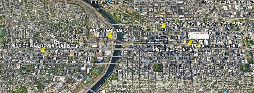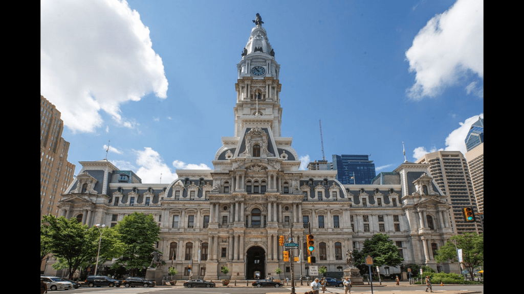 The view of the Philadelphia Museum of Art from the Schuylkill River in Philadelphia is pictured on the right.