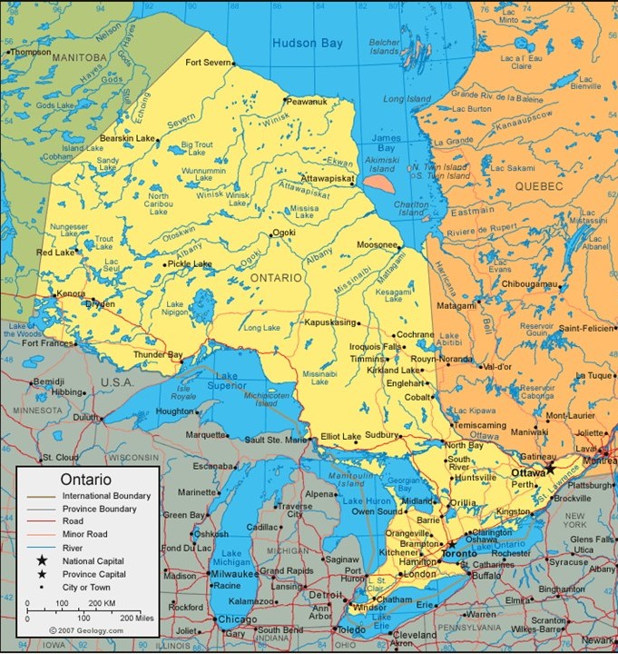 Ottawa is on the south bank of the Ottawa River on Ontario’s border with Quebec, with Gatineau on the other side of the river in Quebec.