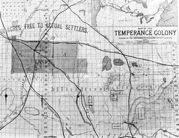 The first settlers were said to have arrived by railway from Ontario to Moose Jaw in Saskatchewan, then complete the final leg to what became Saskatoon by horse-drawn cart, as the railway had yet to be completed to Saskatoon.