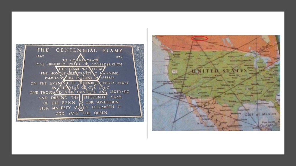 I am looking at the side of the star tetrahedron that extends from Edmonton in Alberta, Canada, and goes to Ottawa in southern Ontario, and the national capital of Canada.
