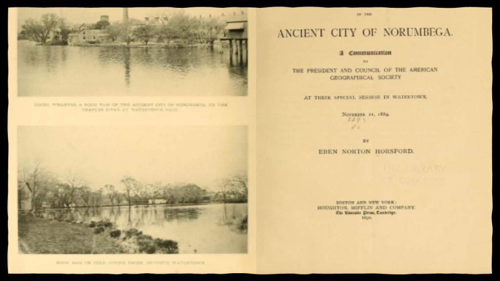 This is information from an 1889 communication by Eben Horsford to the American Geographic Society in Watertown, Massachusetts, on the “Ancient City of Norumbega.”