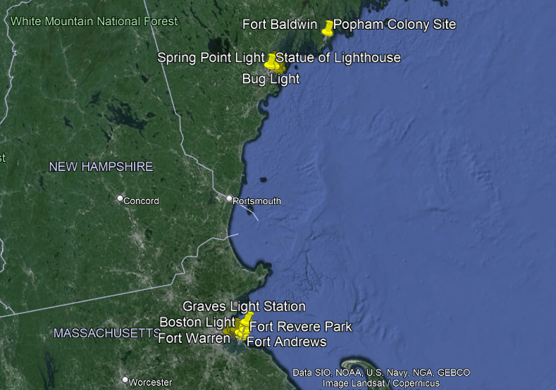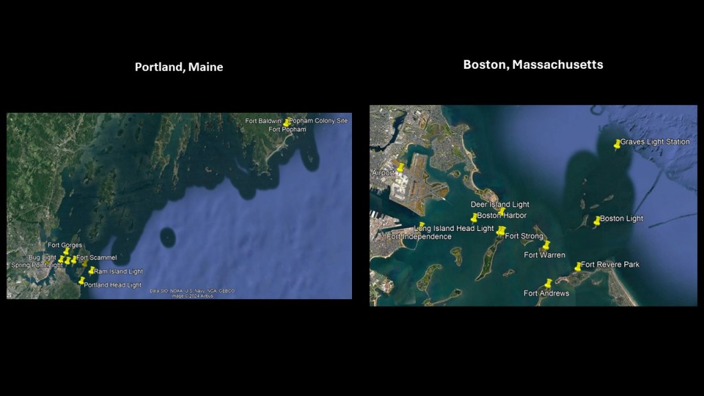 I want to return to the subject of Portland’s Casco Bay Estuary, and the lighthouses and star forts and “Calendar Islands” and “ledges” found here, and then compare it with the lighthouses, star forts and islands in Boston Harbor,