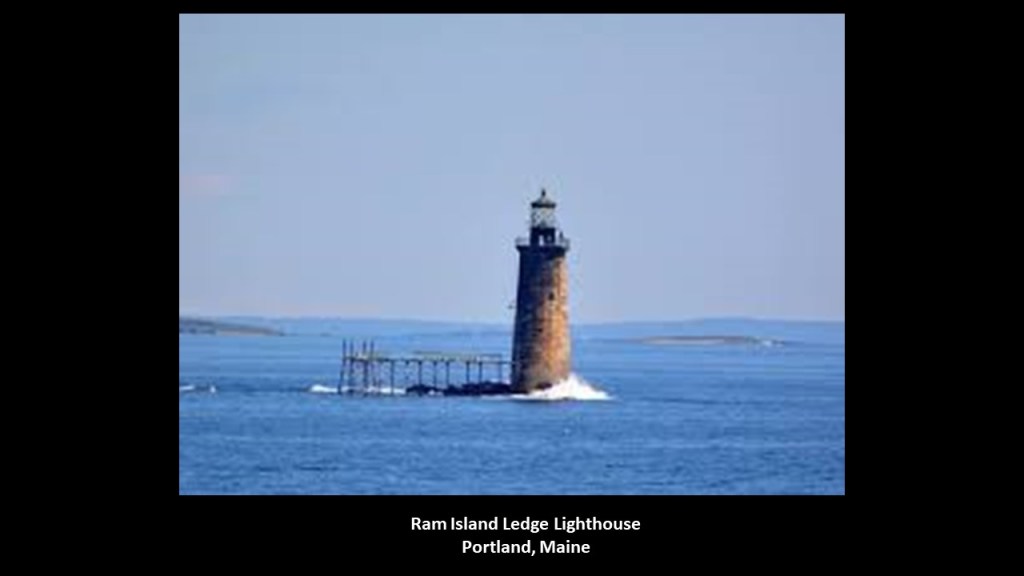 The Ram Island Ledge Lighthouse is at the northern end of the main shipping channel into Portland.