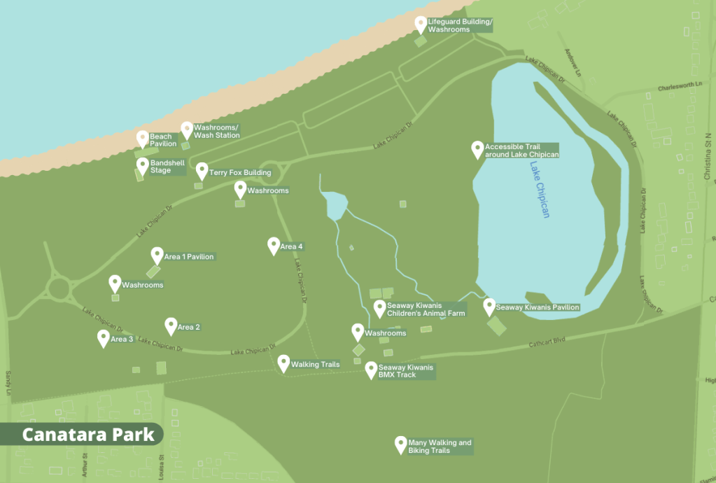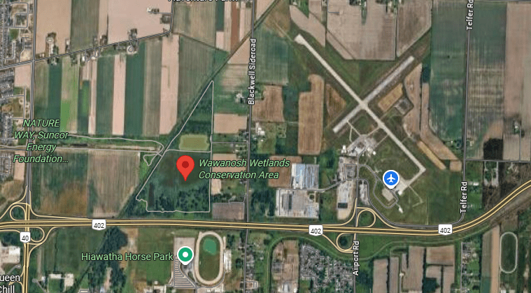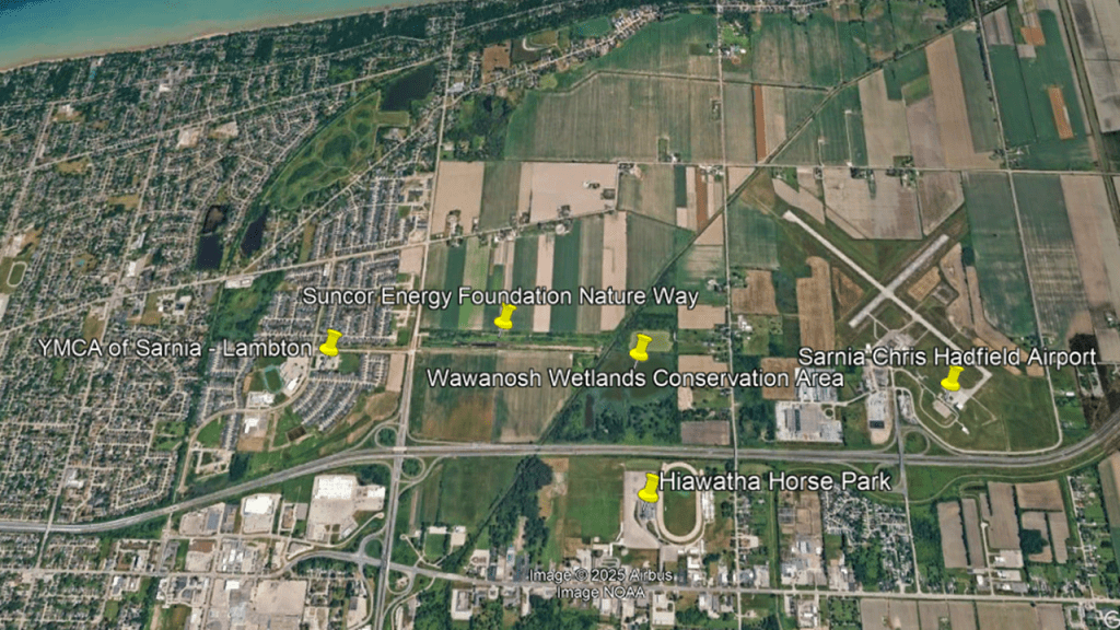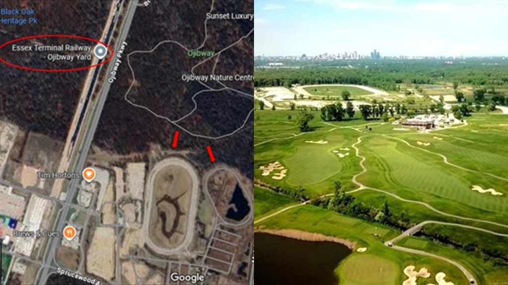 Next, between the Ambassador Golf Course and the Ojibway Nature Center of the Provincial Nature Park are two oval, or elliptical shapes.