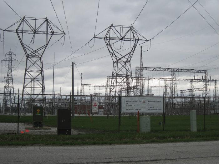 The JC Keith Transformer Station on one side of the generating station is an electrical substation connected to both the Ontario grid and the Michigan grid.