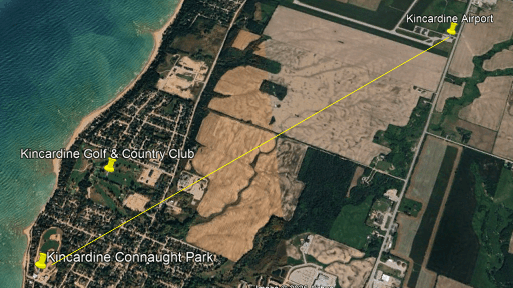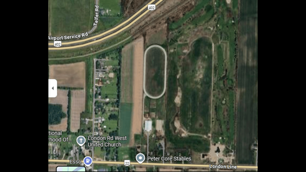The first thing I would like to mention about this is that I have found countless examples in my past research of airports having racing tracks in angular relationships short distances away, just like what we see here in Windsor.