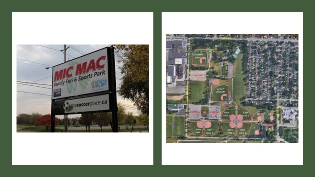 Mic Mac Park is one of the largest, if not the largest, park in Windsor, with playground facilities; soccer fields; four baseball diamonds; tennis courts and a swimming pool, and is a popular location for children during the summer months.