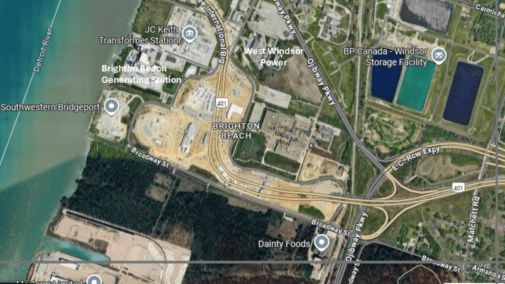 The Brighton Beach Generating Station, JC Keith Transformer Station and Southwestern Bridgeport are located right beside each other directly adjacent to the Detroit River; West Windsor Power is located across Highway 401 from those three locations, and the BP Canada-Windsor Storage Facility is across the Ojibway Parkway from West Windsor Power.
