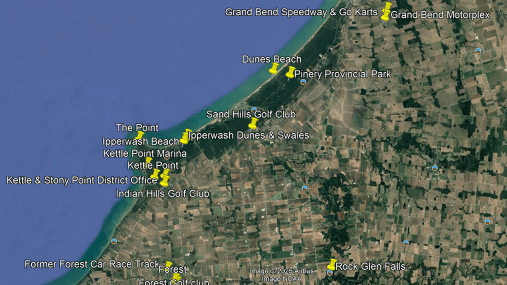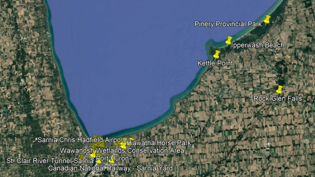 I am going to be taking a close look at the Ontario-side of Lake Huron in the fourth-part of this series, and where I expect to see more of the same kinds of things I have been looking at thus far, and I will be adding a few more things to the list, like golf courses, airports, and race tracks, and bring in my findings about Circuit Board Earth, which I have seen along the way but haven’t been focusing on.