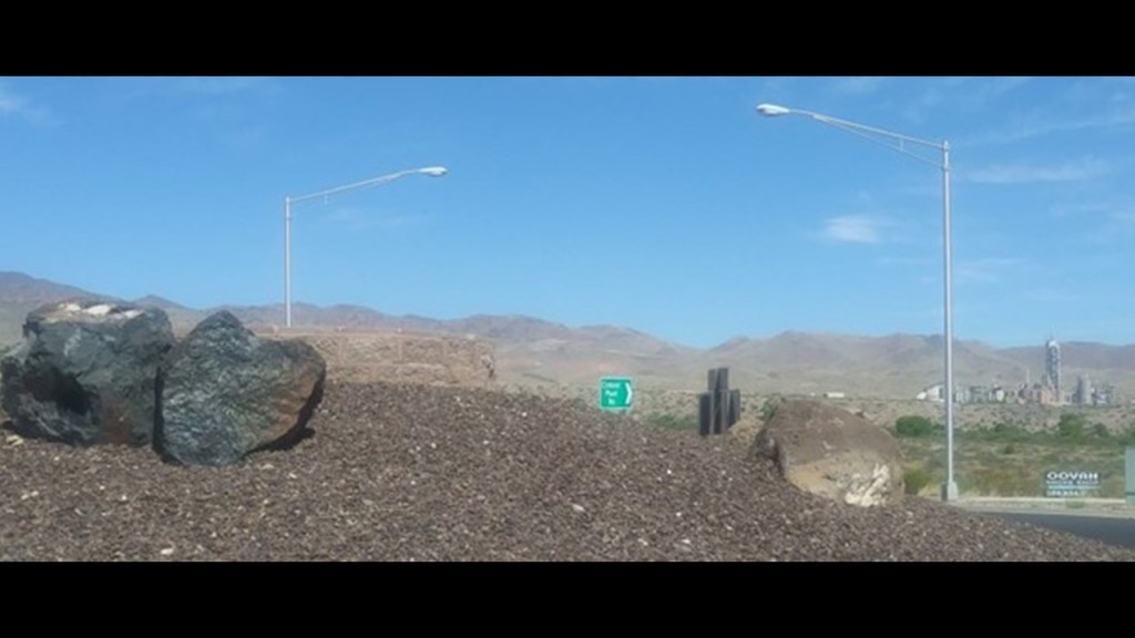This next photo was taken of a roundabout in Arizona, with ancient masonry blocks in the foreground; the road sign saying Cement Plant Road in the middle of the picture; and in the distance you are seing the Cement Plant in Clarkdale, Arizona.