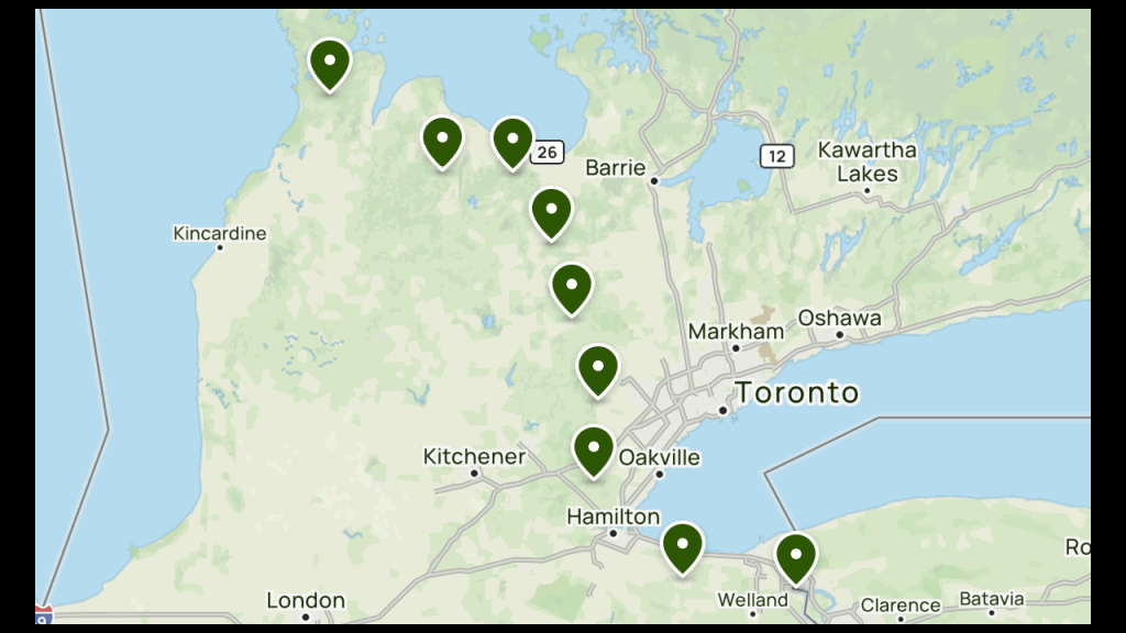 The VIA Rail Corridor runs mostly along the north shores of Lake Erie and Lake Ontario, and alongside the St. Lawrence River.