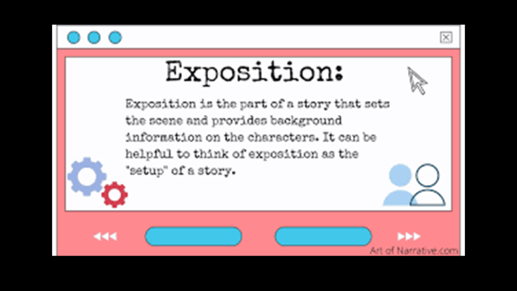 One of the definitions of the word exposition is a device used to give background information to the audience about the setting and characters of the story.