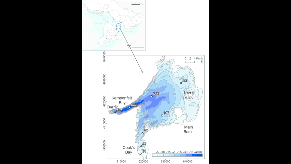 The third-largest lake entirely in Ontario, it is relatively shallow with an average depth of 15-feet or 4.5-meters, making for many sandbars along the shoreline.