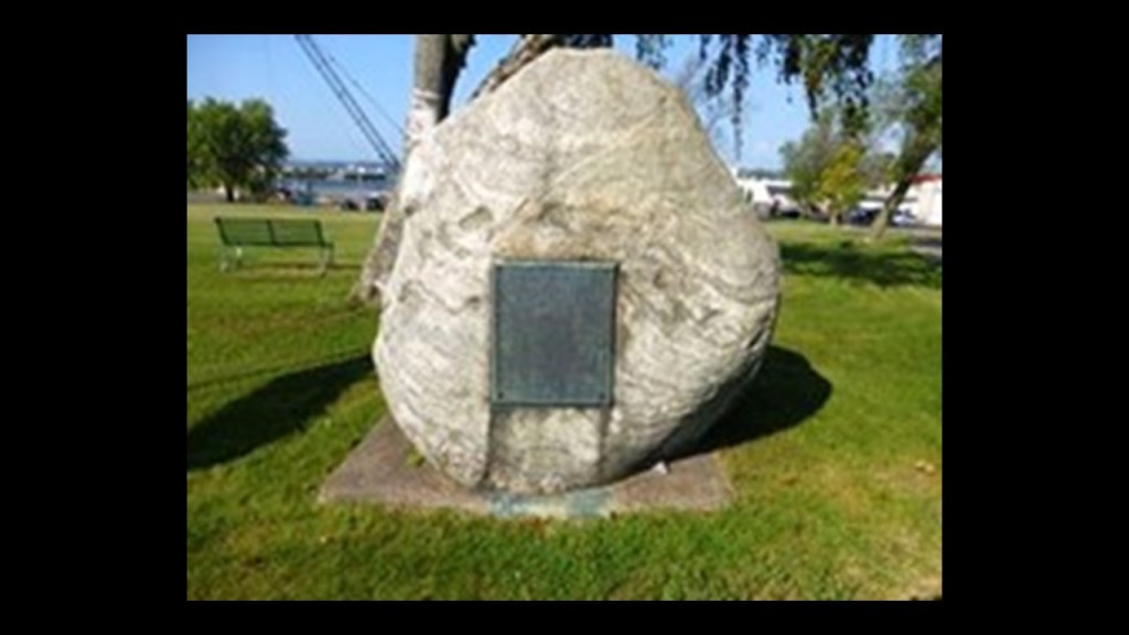 This colossal stone is on the earthwork as well, near the obelisk, said to commemorate the location of what we are told was the French Fort Repentigny, said to have been established in 1750, and captured by the British in 1760 during the French and Indian War, and burned down and abandoned in 1762.
