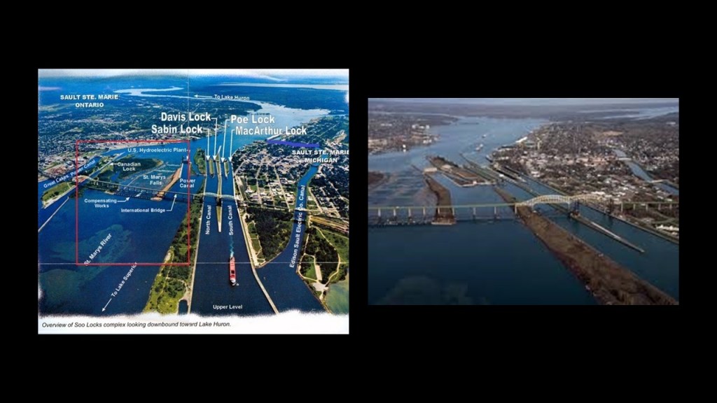 In the next place in the graphic, I will start at the Sault Ste. Marie International Bridgr between the United States and Canada, which permits vehicular traffic to pass over the locks.