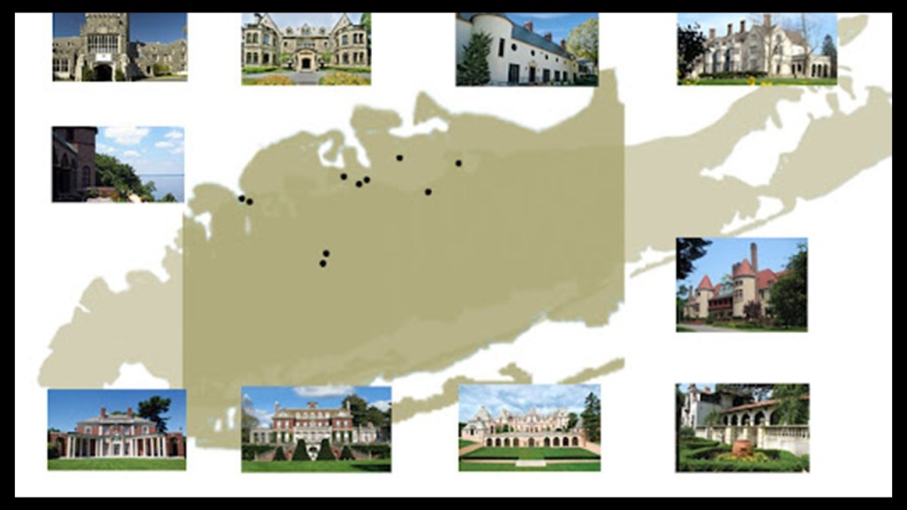 We are told “Long Island’s Gold Coast” had over 500 lavish mansions and castles built in 70-square-miles, or 180-kilometers-squared, by the very wealthy of the Gilded Age.