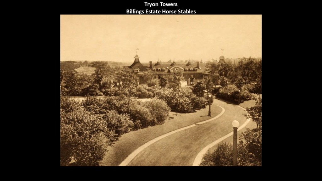 The stables for his racing horses, known as “Tryon Towers,” were noteworthy for having numerous towers and cupolas.