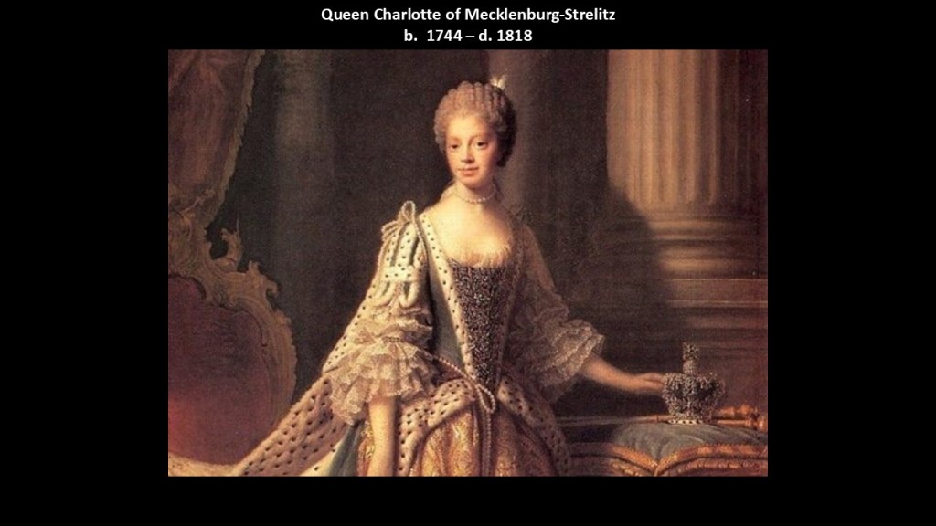 Queen Charlotte was born into the ruling family of Mecklenburg-Strelitz, a duchy in Northern Germany.
