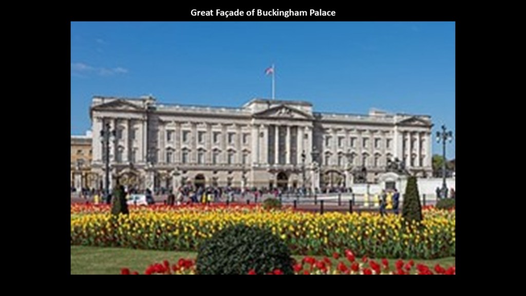 Edward Blore was credited with completing John Nash’s design of Buckingham Palace in 1847 by designing the Great Facade of Buckingham Palace, and that it was completed in 1850.