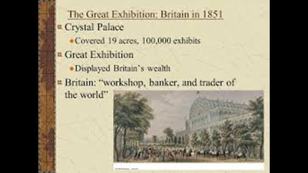 We are told the purpose of the first Great Exhibition in 1851 was said to be making clear to the world Britain’s role as industrial leader, while at the same time it provided a platform on which other countries from around the world could display their achievements.