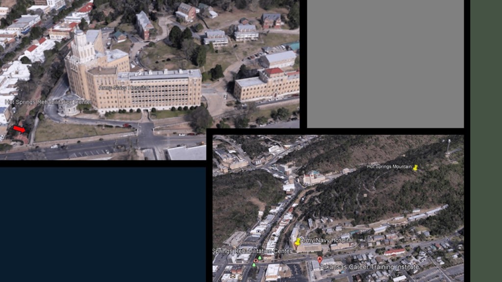 The former Army and Navy Hospital in Hot Springs, the first general hospital in the country that treated both Army and Navy patients starting in January of 1887, was located at the foot of Hot Springs Mountain, and has high, stone walls and star fort-looking characteristics.